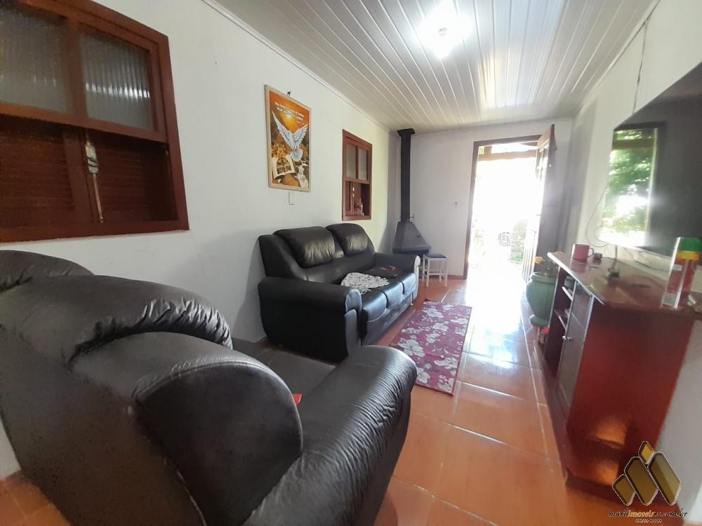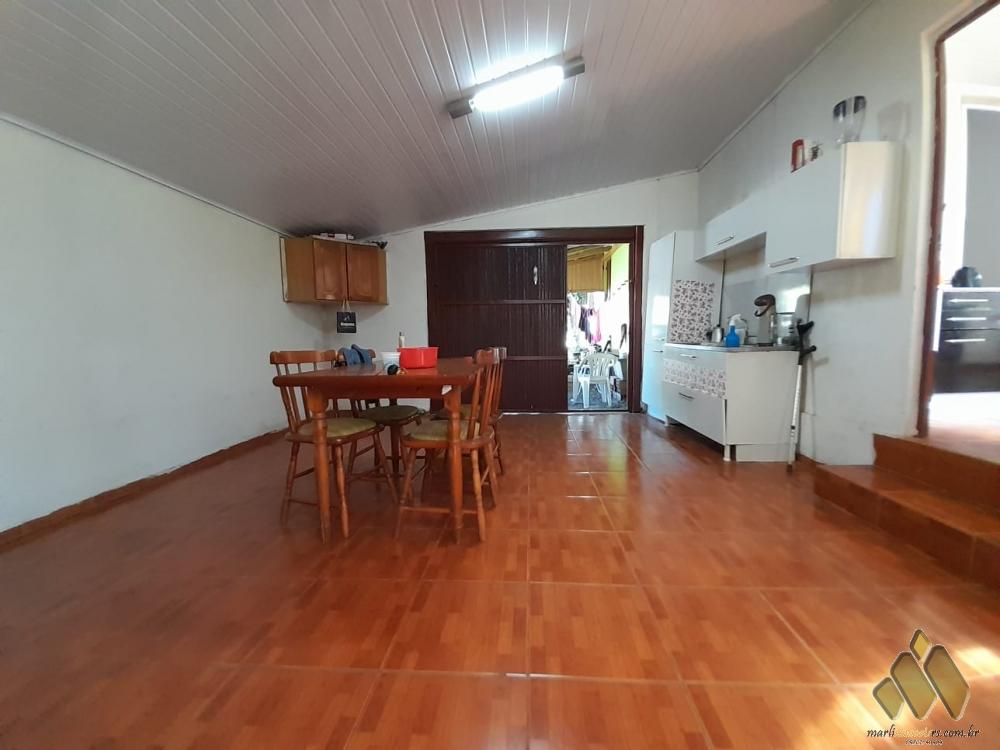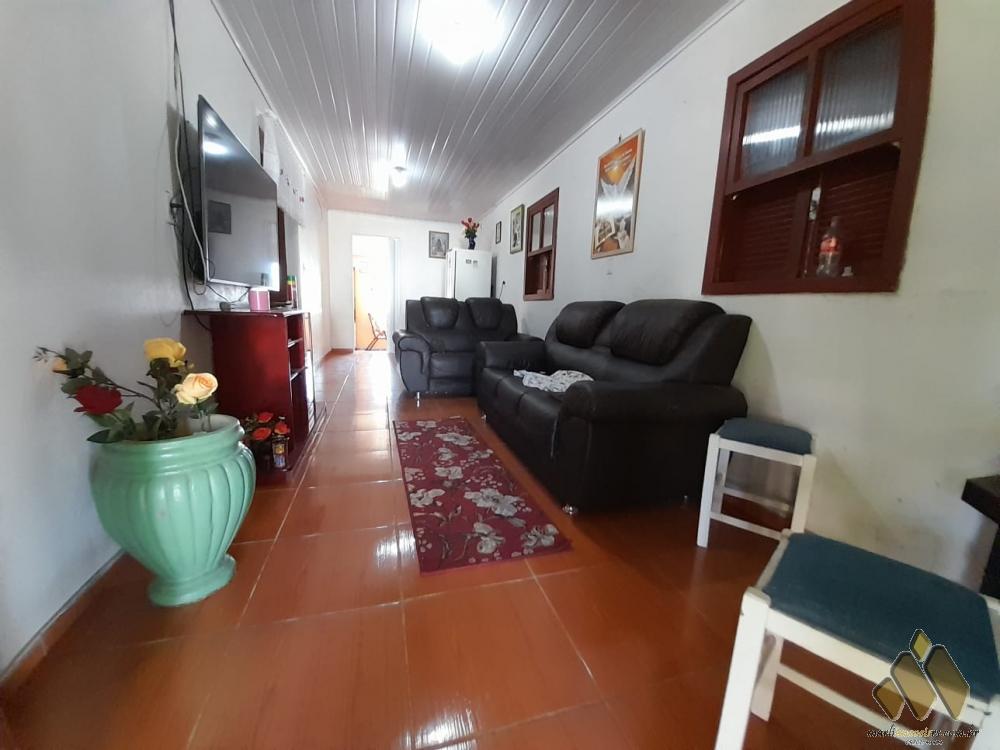 3 dorm, sala estar/jantar, cozinha com churrasqueira, dois banheiros, garagem para três carros, amplo pátio.