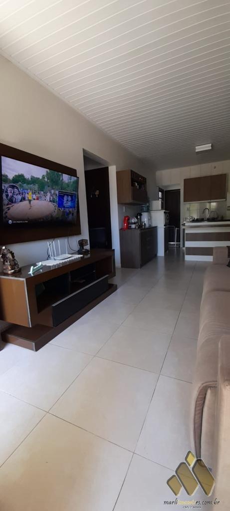 2 dorm, dois banheiro, sala, cozinha, banheiro, garagem fechada para um carro mais vaga coberta, quiosque, pátio frente e fundos.