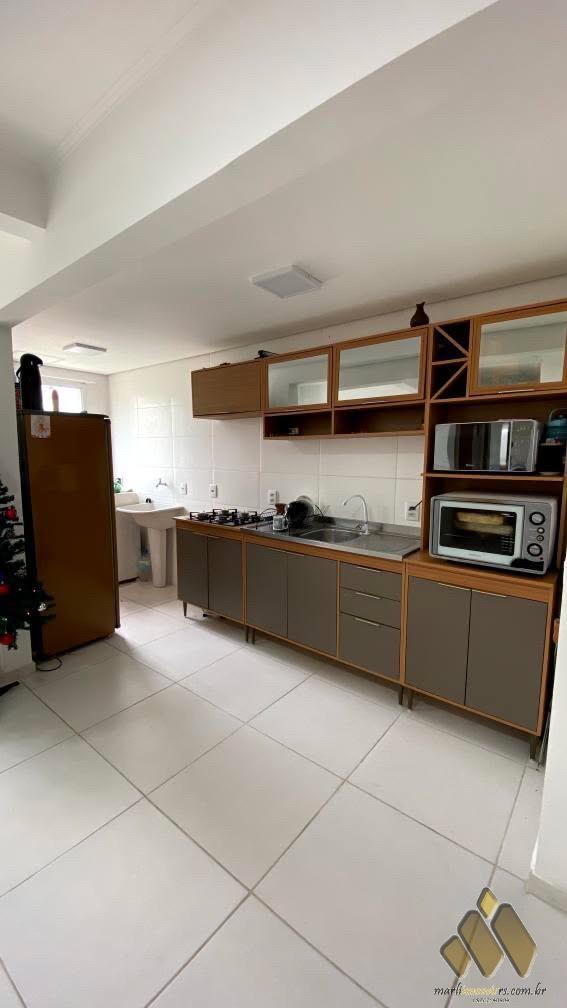 2 dormitórios, sala, cozinha, banheiro, área de serviço, churrasqueira, box de estacionamento.