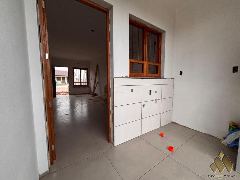 Geminada com amplo pátio. São 2 dormitórios, sala/cozinha, banheiro, área de serviço com churrasqueira, amplo pátio frente e fundos.