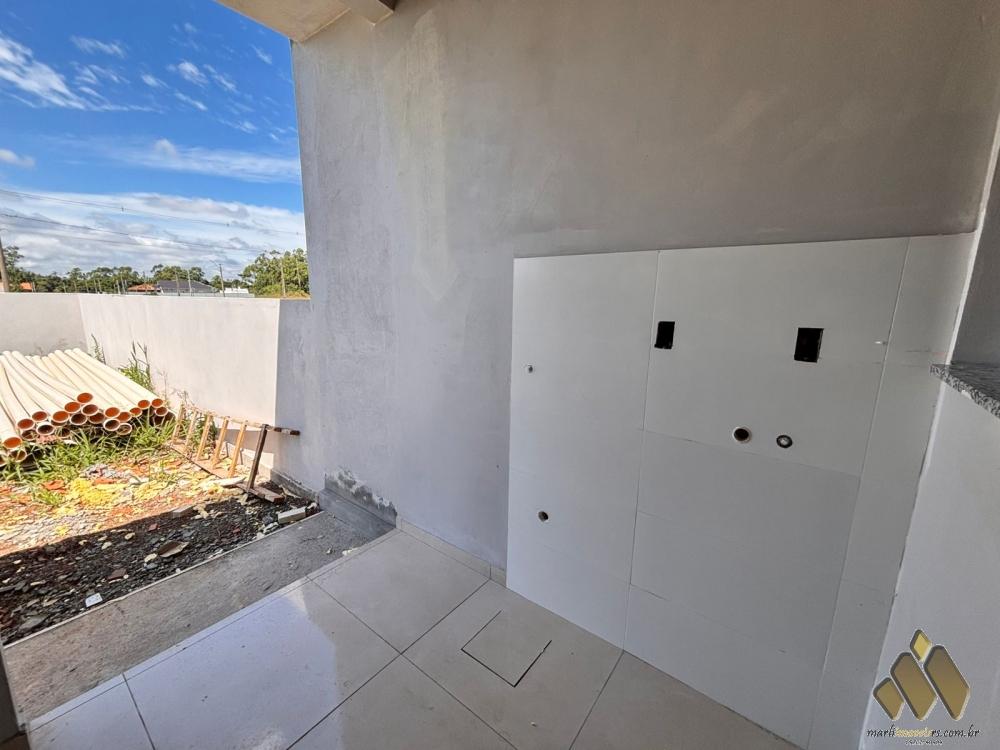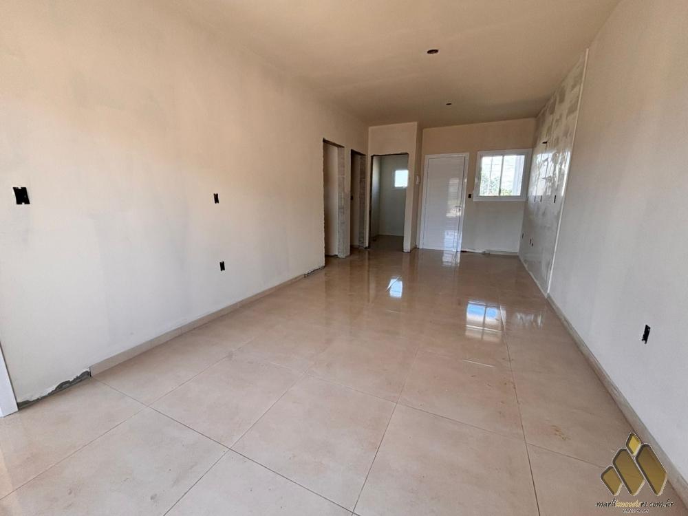 Geminada com amplo pátio e ótimo acabamento. 2 dormitórios, sala e cozinha integradas, banheiro, área de serviço, churrasqueira, vaga garagem, amplo pátio frente e fundos.