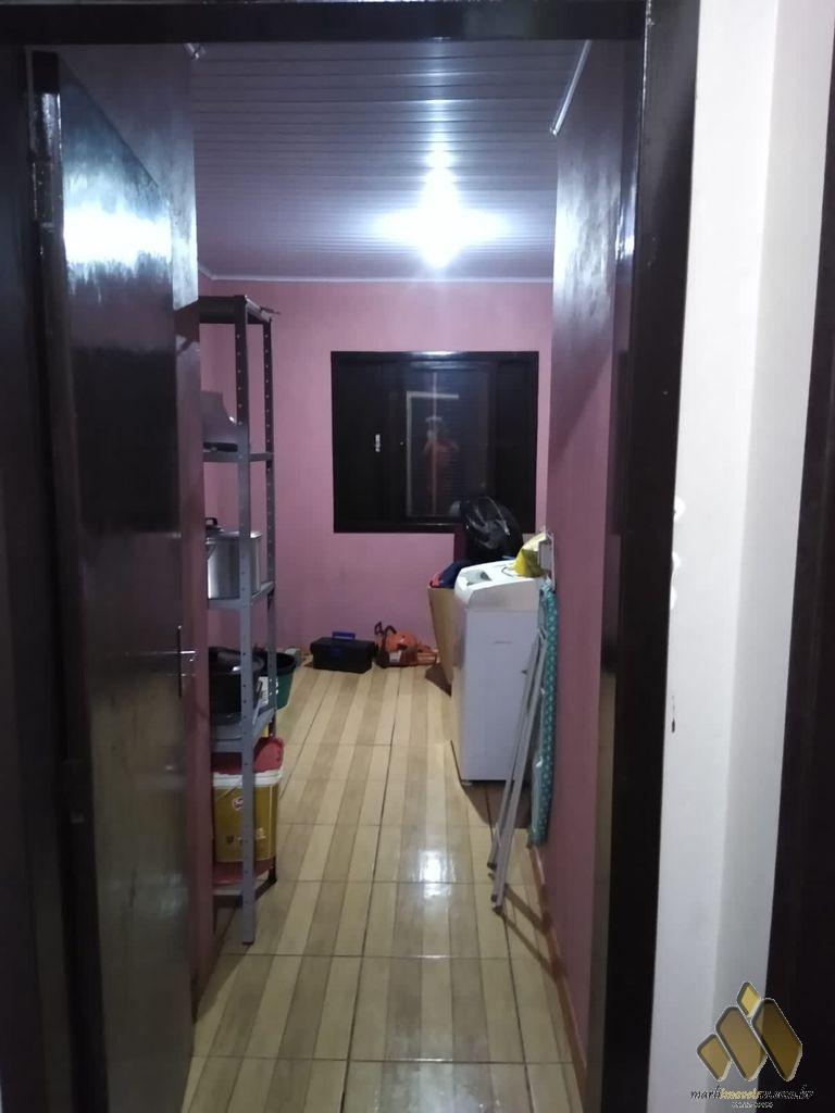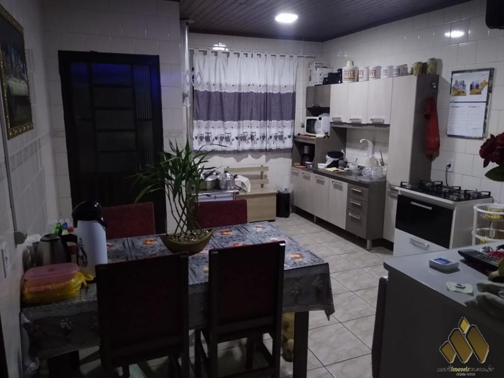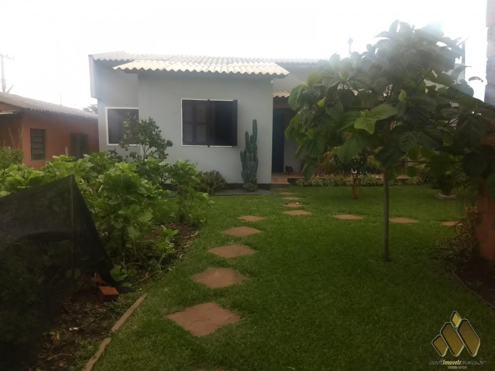 3 dorm, sala, cozinha, banheiro, lavanderia, garagem, churrasqueira. Amplo pátio frente e fundos. Peça nos fundos.