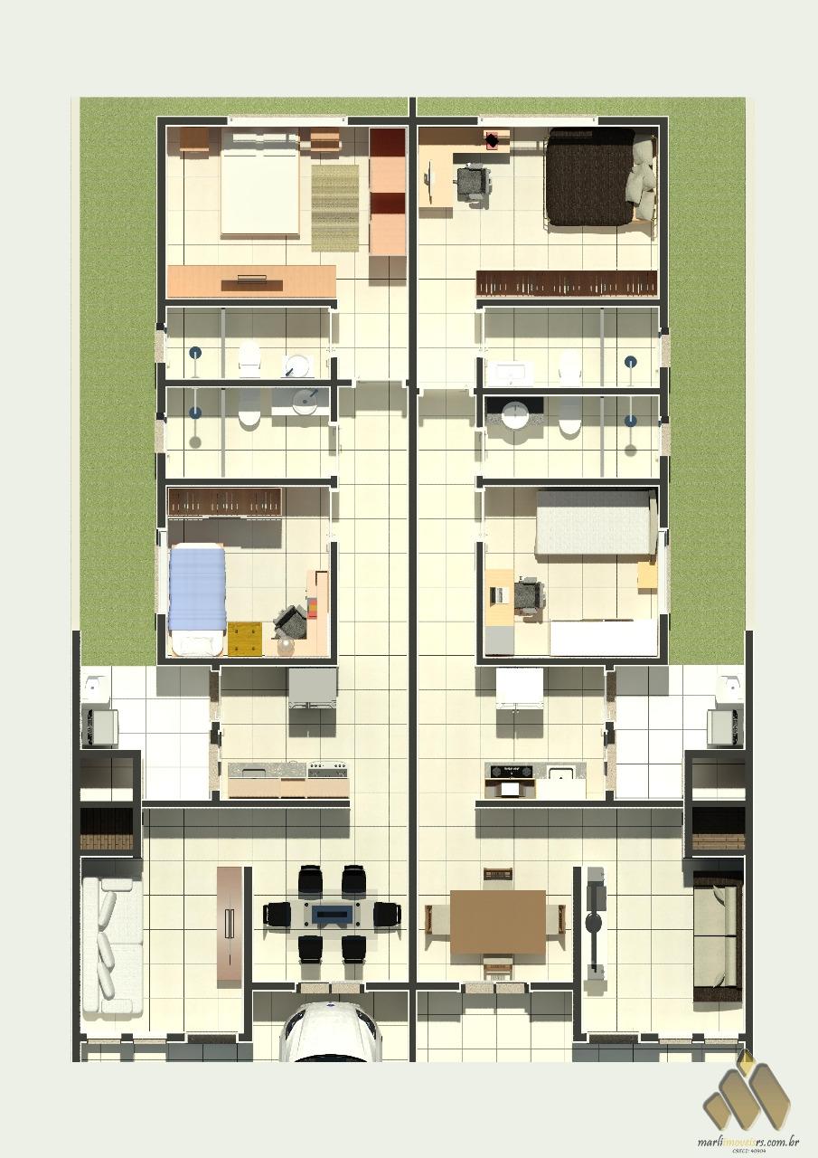2 dorm, sendo uma suíte, sala estar com lareira, sala jantar, banheiro social com acessibilidade, área de serviço com churrasqueira, circulação, espaço coberto para carro. Pátio. Excelente acabamento, piso porcelanato.