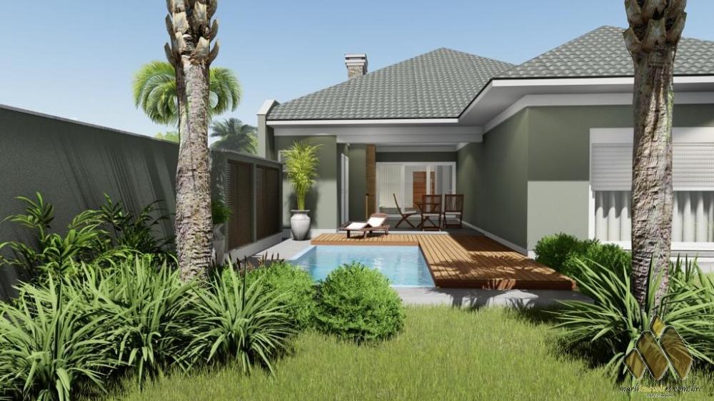 3 dorm, sendo uma suíte com closet, sala estar/jantar com lareira e cozinha integradas, espaço gourmet com churrasqueira, banheiro, lavanderia, garagem dois carros, pátio com piscina. Ótimo acabamento: piso porcelanato, aberturas externas em alumínio. Espera água quente, espera ar condicionado. Terreno: 13 x 30,25. Pátio fundos murado.