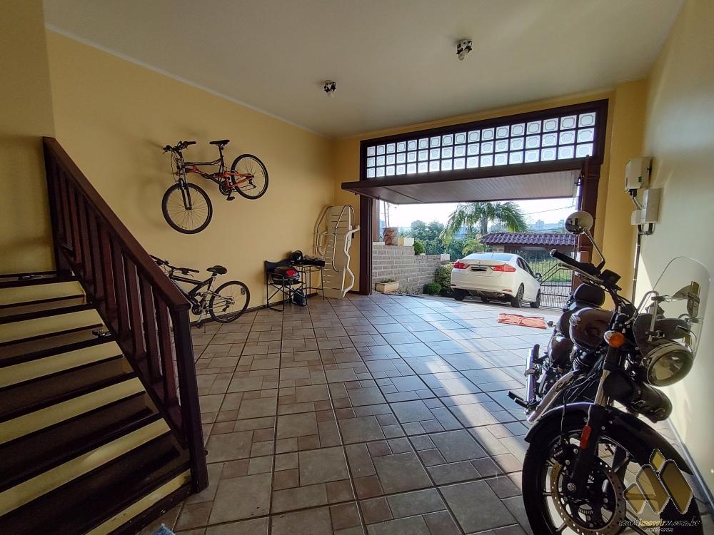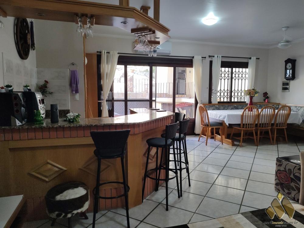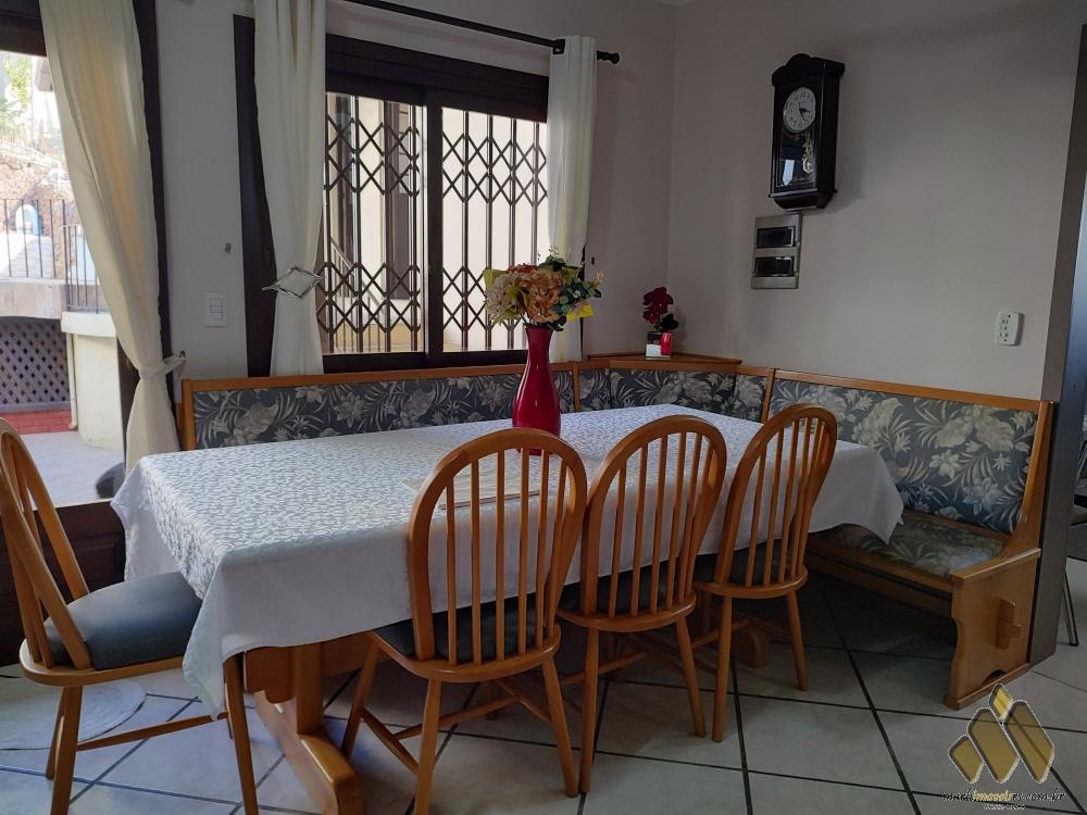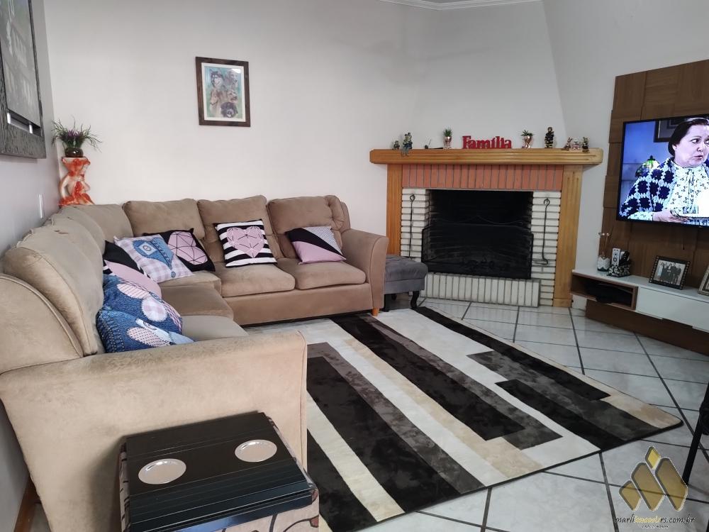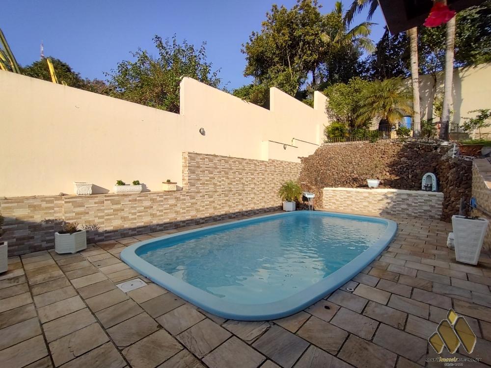 3 dorm, sendo uma suíte com hidro e closet, e dois com móveis projetados, sala de estar, sala de jantar com lareira e espaço gourmet com churrasqueira, cozinha com móveis projetados e piso porcelanato, dois banheiros, lavabo, garagem para dois carros, despensa, depósito, lavanderia, ampla área externa social, área de lazer com piscina, pátio frente e fundos 555m². Rodaforro em gesso, aquecimento a gás na cozinha e banheiros. Placa solar. Aceita imóvel de menor valor.