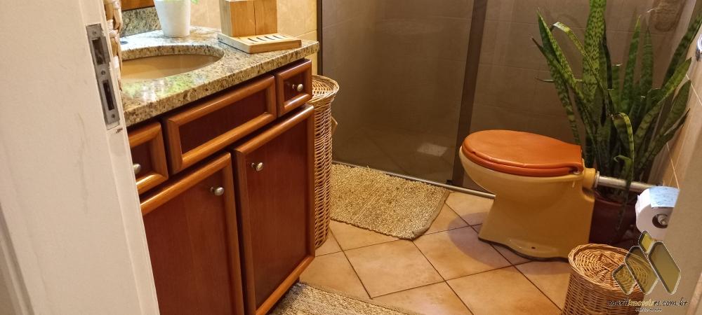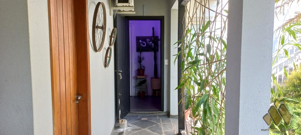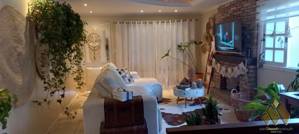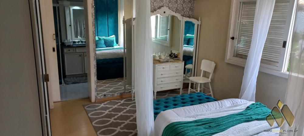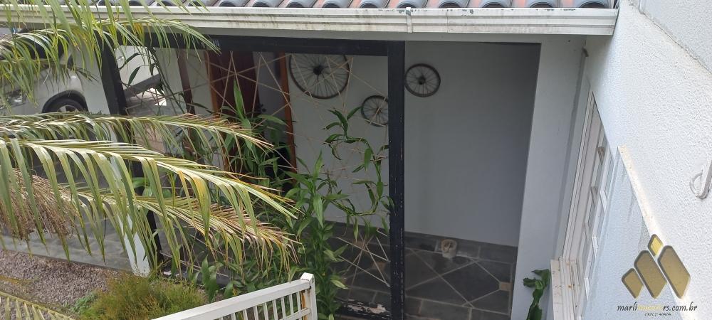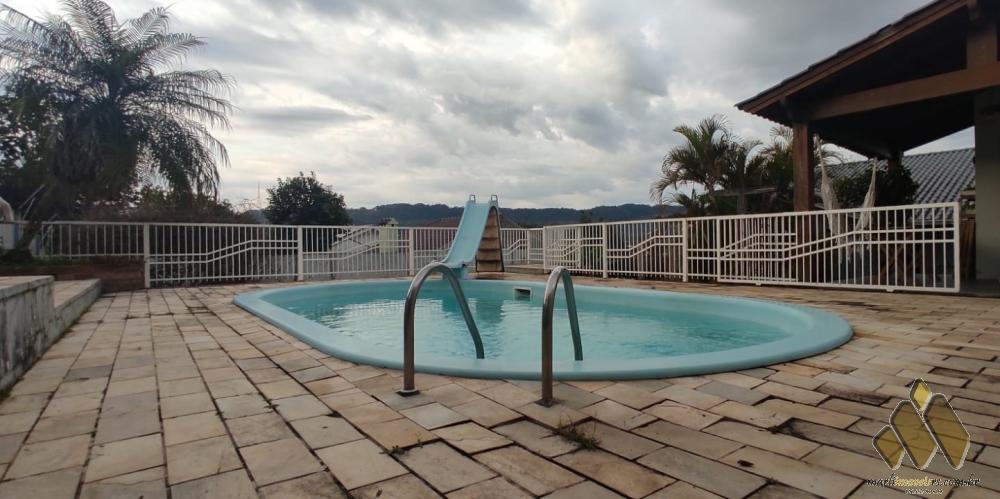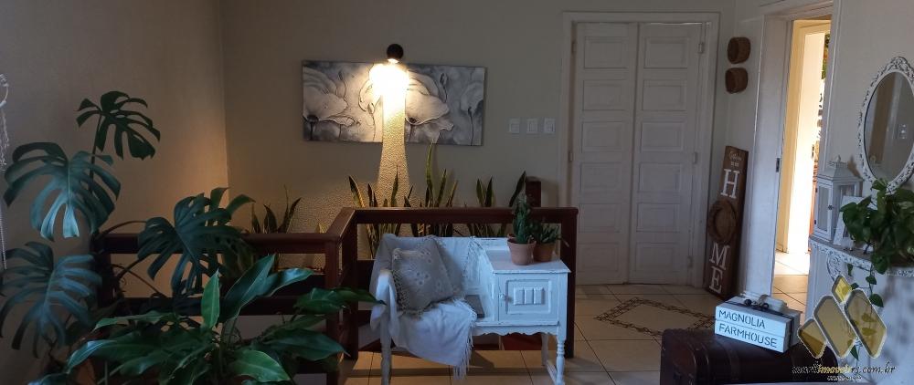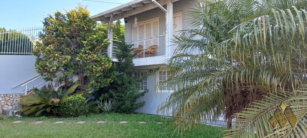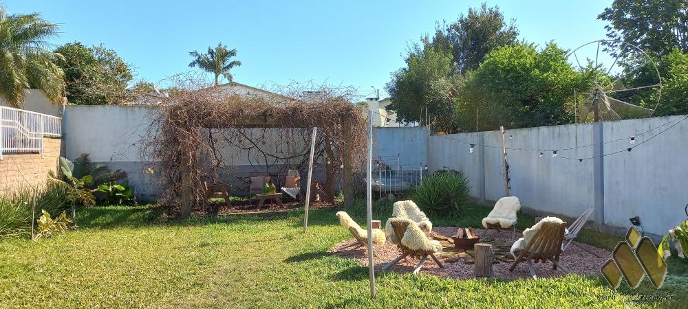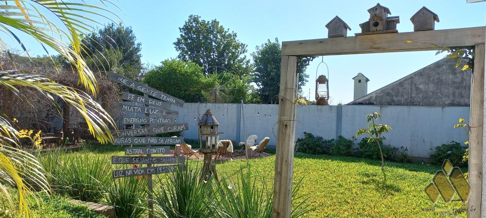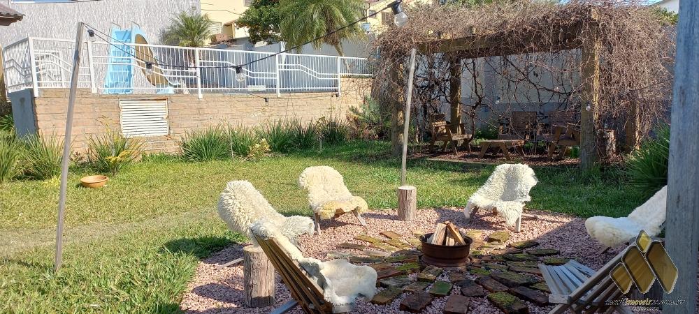 3 dorm, sendo uma suíte com banheira de hidromassagem, sala de estar com lareira de pedra rústica e sanca de gesso, salão de festas, cozinha, jardim de inverno, lavanderia, quiosque com churrasqueira, banheiro, piscina de fibra com escorregador (6 x 4), jardim com pergolado e fogueira, horta, garagem coberta para três carros mais espaço para dois, sótão com acesso externo, sacada. Escadaria interna e externa, garagem pode ser fechada e convertida em um varandão de lazer conforme projeto de arquitetura. Piso laminado nos dormitórios, cerca elétrica e muro em todo perímetro da casa, interfone, alarme, encanamento a gás, janelas do térreo com grade pantográfica. Possibilidade de ampliação de mais um dormitório.