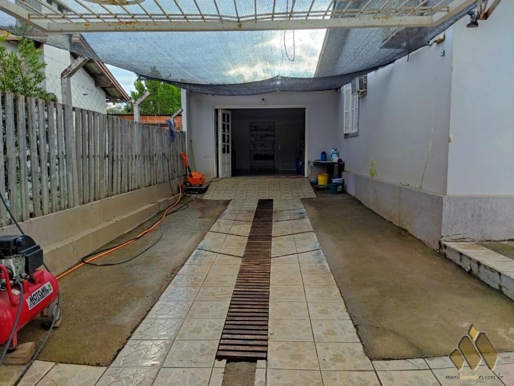 3 dorm, sala, cozinha, banheiro, área de serviço, garagem para dois carros. Possui peça nos fundos com sala/cozinha, quarto e banheiro. Pátio fechado com portão eletrônico.