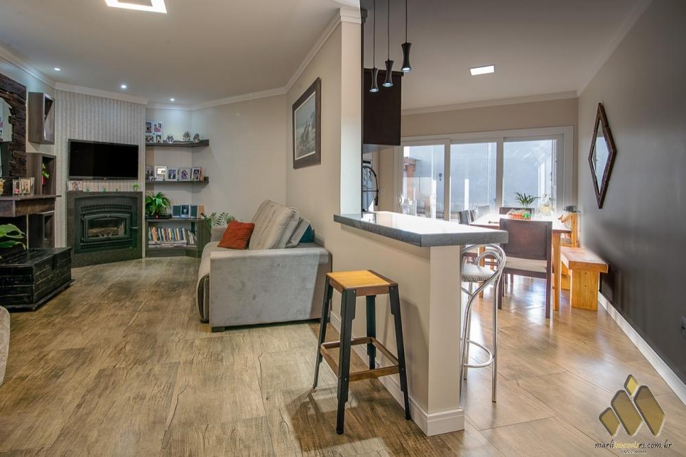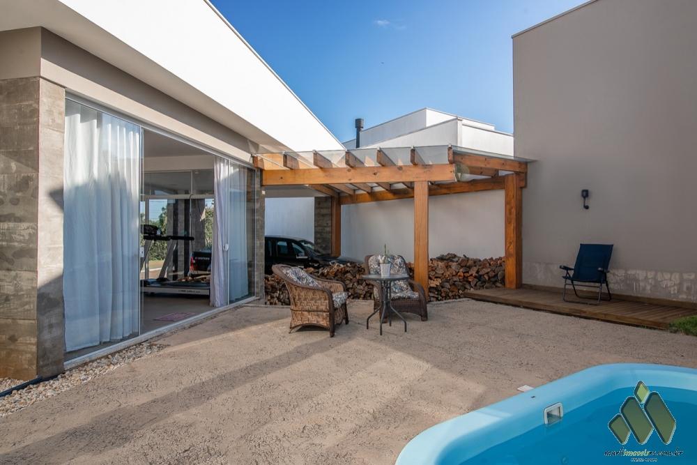 2 dorm, sendo um com closet, sala e cozinha integradas, sala com lareira canadense com calefação, espaço gourmet com churrasqueira e forno a lenha, piscina com aquecimento. Residência com energia solar.