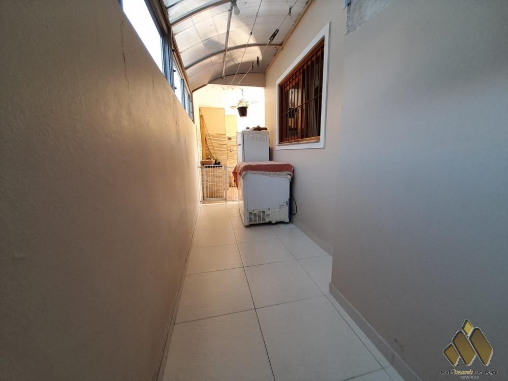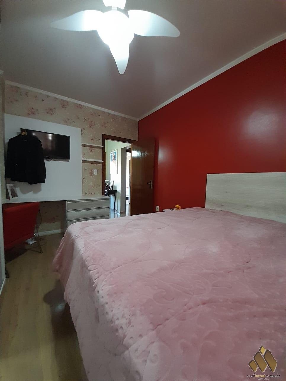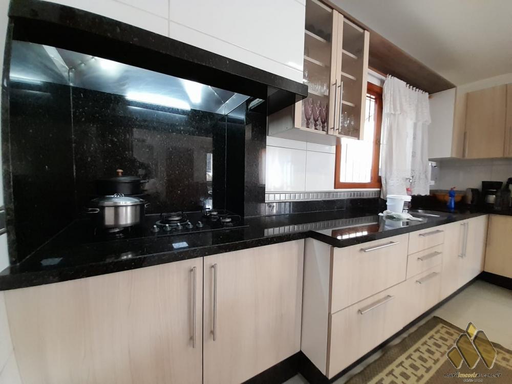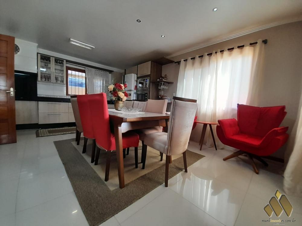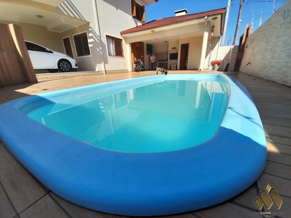 4 dorm, sendo uma suíte, sala de estar com lareira, sala de jantar, cozinha com coifa, dois banheiros, lavabo, lavanderia, espaço gourmet com churrasqueira, piscina, garagem coberta para um carro mais vaga, pátio com lago ornamental. Ótimo acabamento: piso porcelanato na área social, laminado na privativa, forro em gesso, escada em granito, rodapés em madeira, pingadeiras em granito. Móveis projetados nos dormitórios, cozinha, banheiros. Portão eletrônico, sistema de monitoramento por câmera.