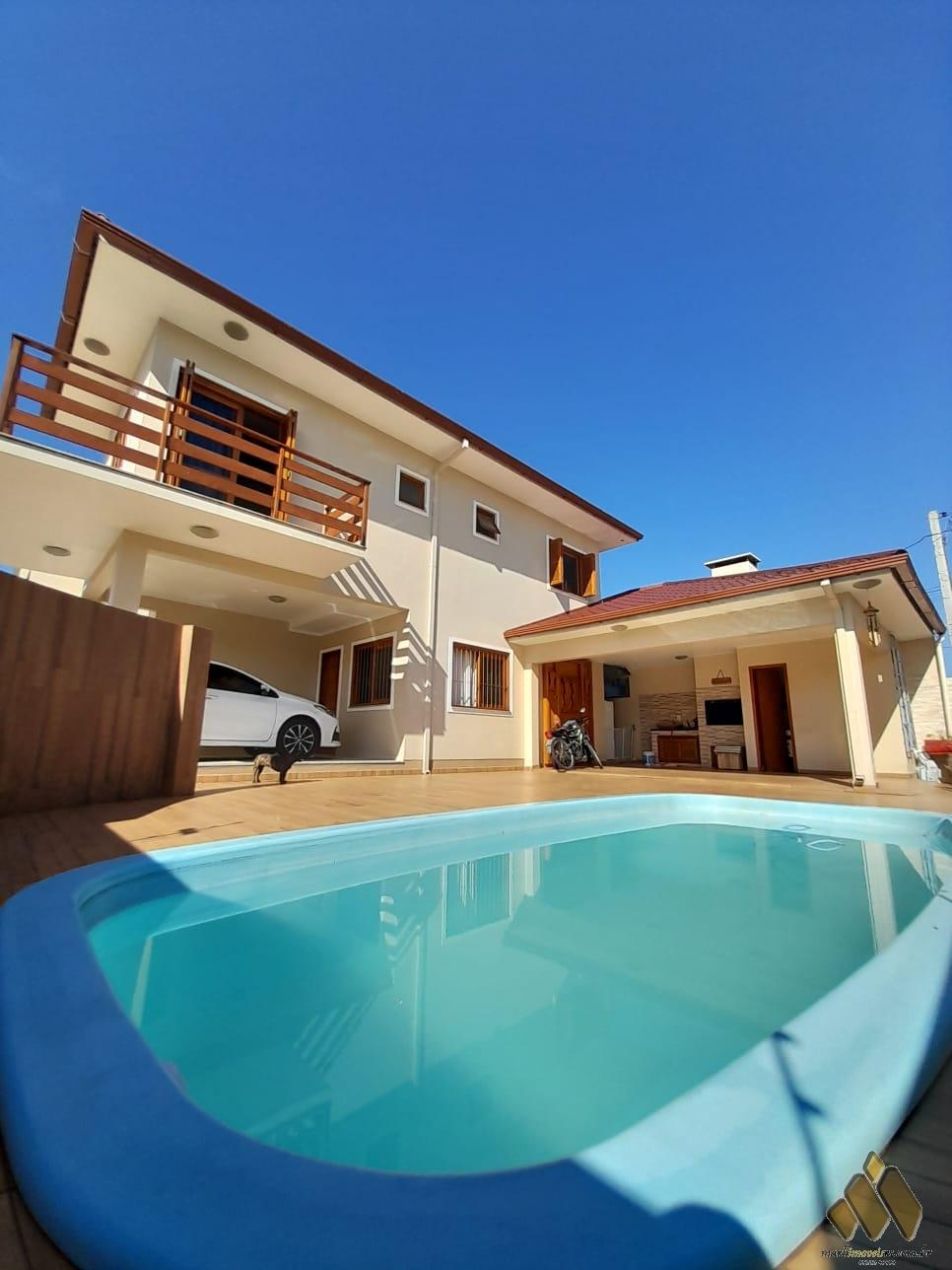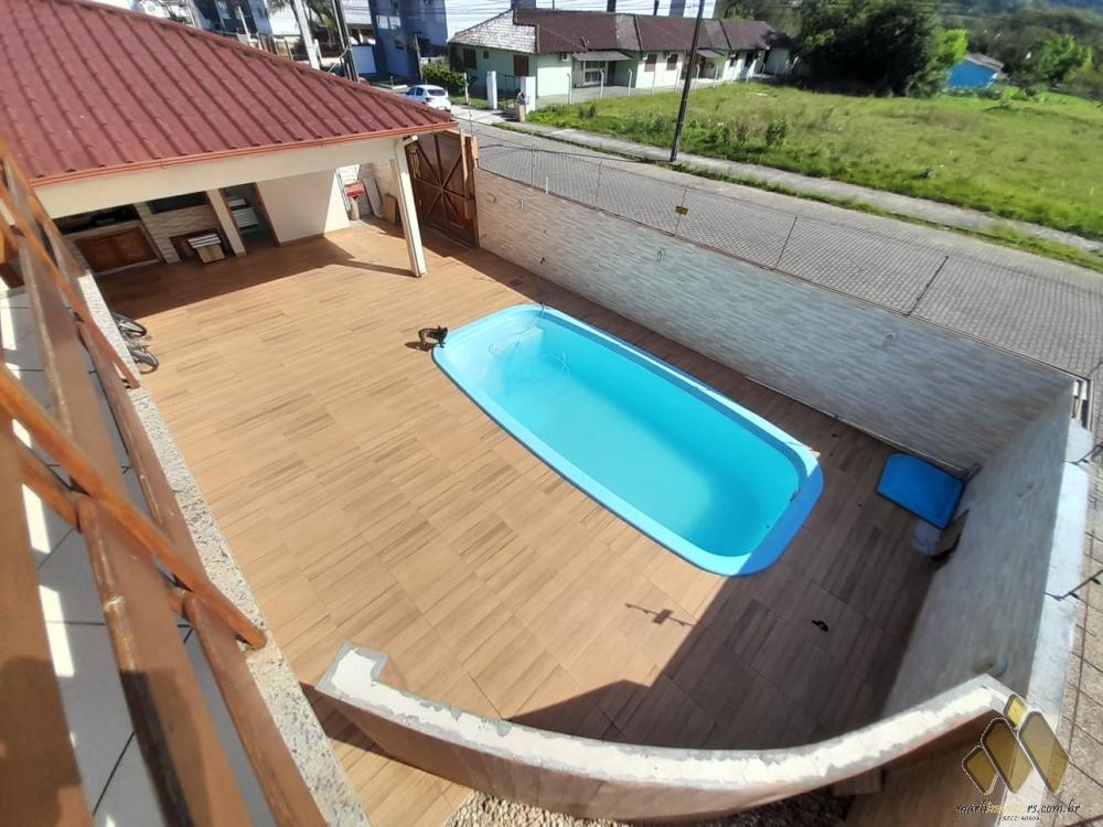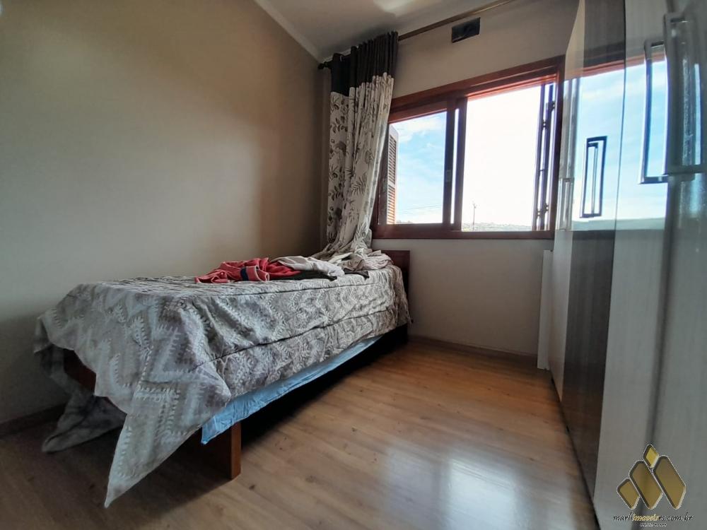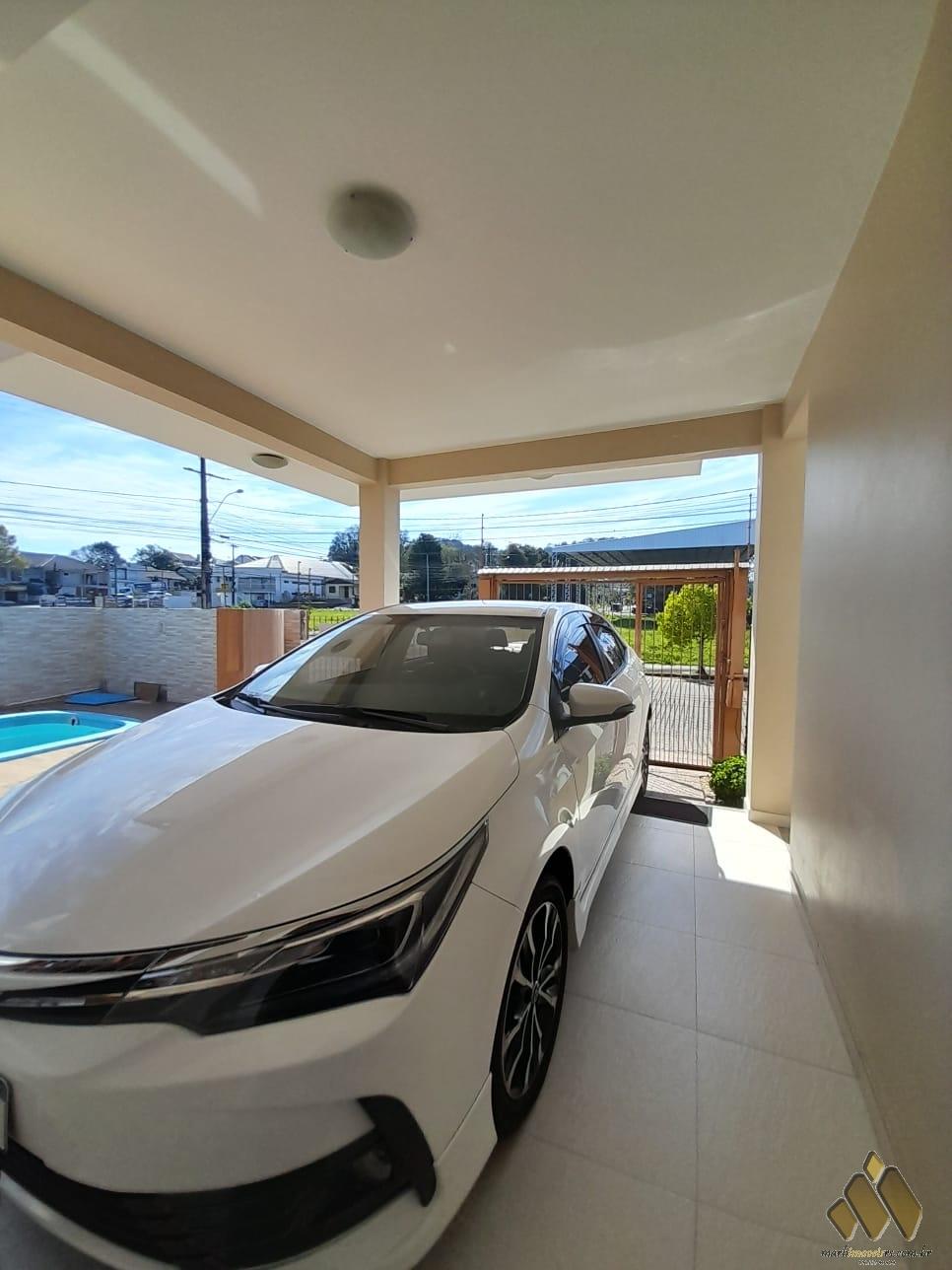 4 dorm, sendo uma suíte, sala de estar com lareira, sala de jantar, cozinha com coifa, dois banheiros, lavabo, lavanderia, espaço gourmet com churrasqueira, piscina, garagem coberta para um carro mais vaga, pátio com lago ornamental. Ótimo acabamento: piso porcelanato na área social, laminado na privativa, forro em gesso, escada em granito, rodapés em madeira, pingadeiras em granito. Móveis projetados nos dormitórios, cozinha, banheiros. Portão eletrônico, sistema de monitoramento por câmera.