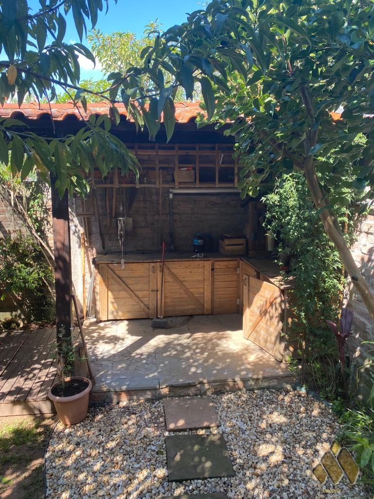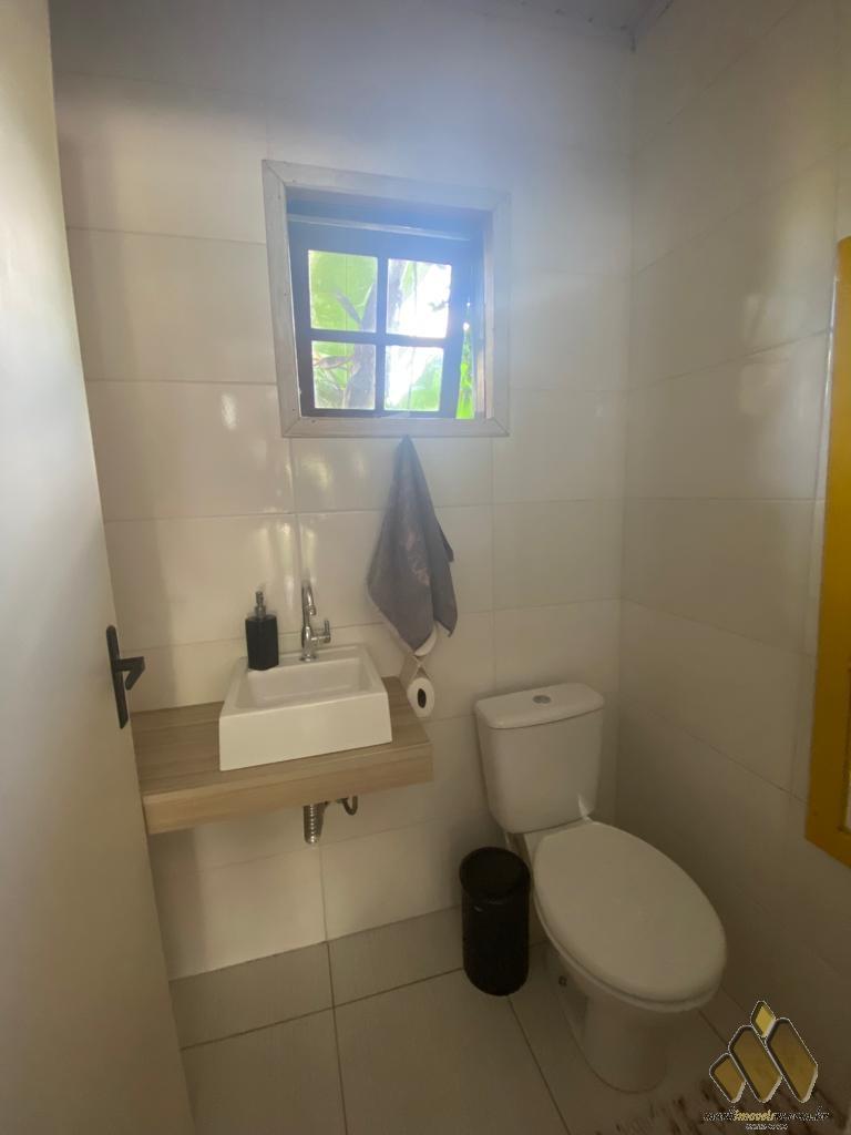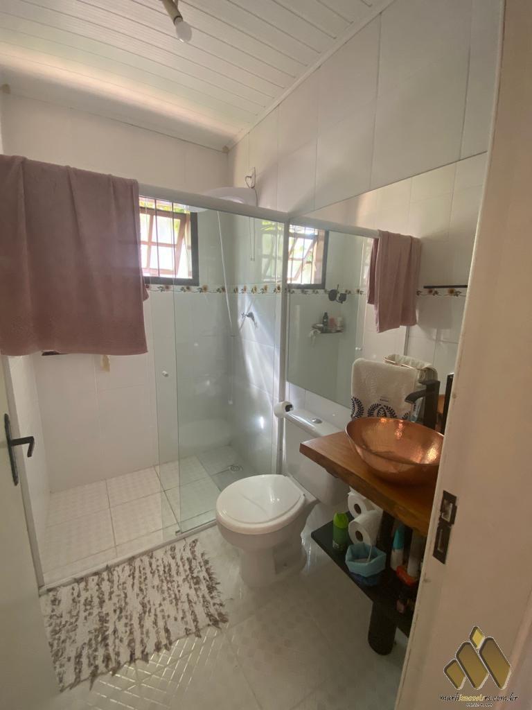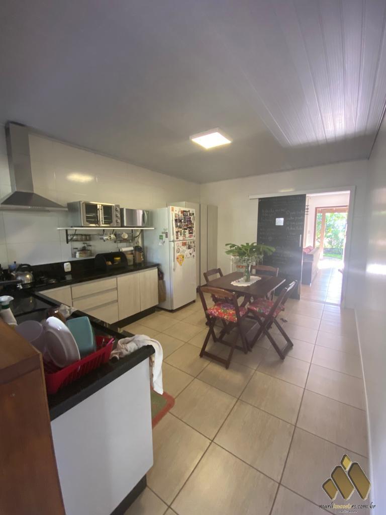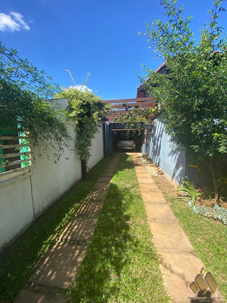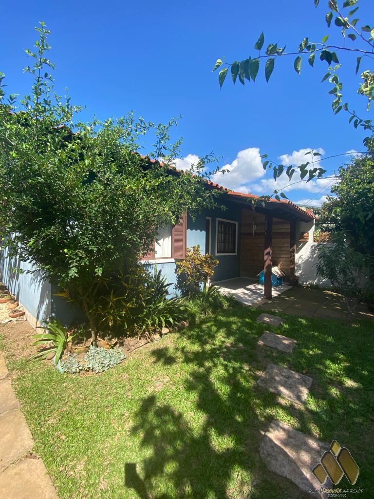2 dorm, sendo um com móveis projetados, sala de estar/jantar com lareira, cozinha com móveis projetados, área com churrasqueira e fogão a lenha, lavabo, banheiro, lavanderia, pátio com árvores frutíferas e diversas plantas.