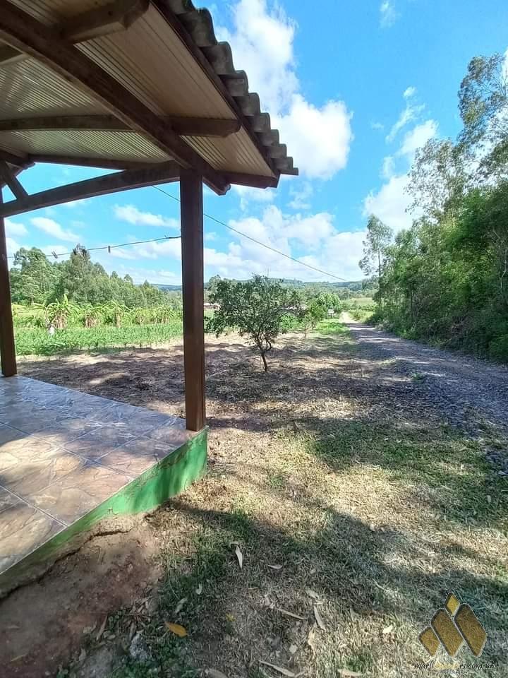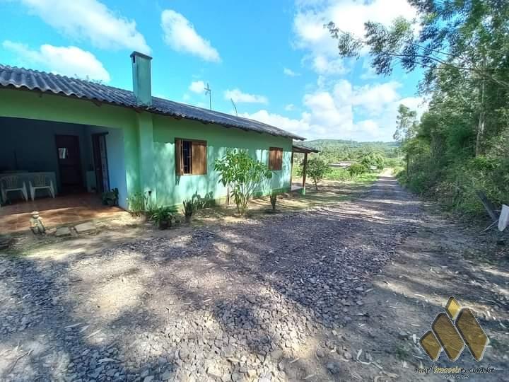 Chácara com alvenaria de 3 dorm, sala, cozinha, banheiro, área de serviço, garagem, churrasqueira.