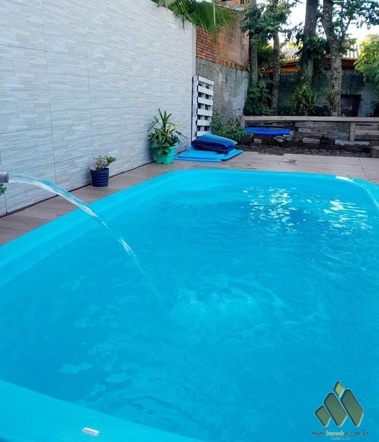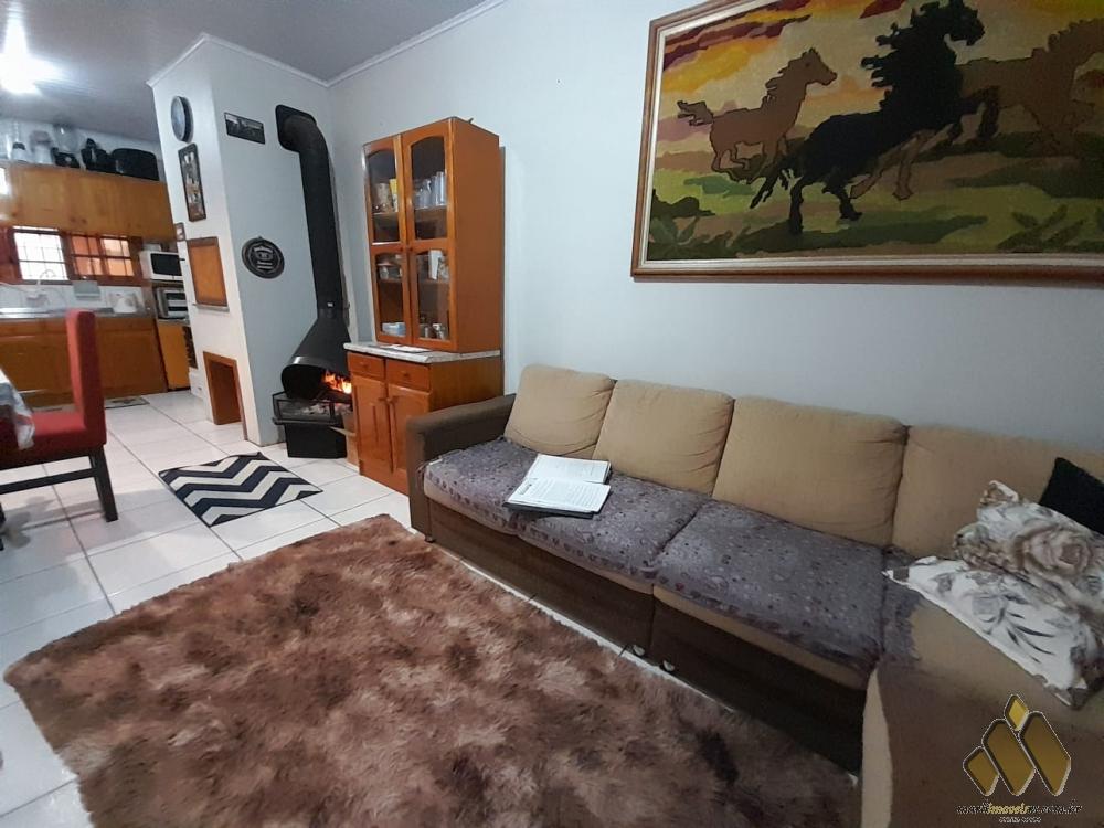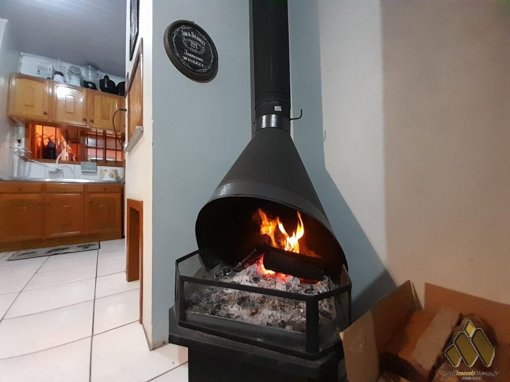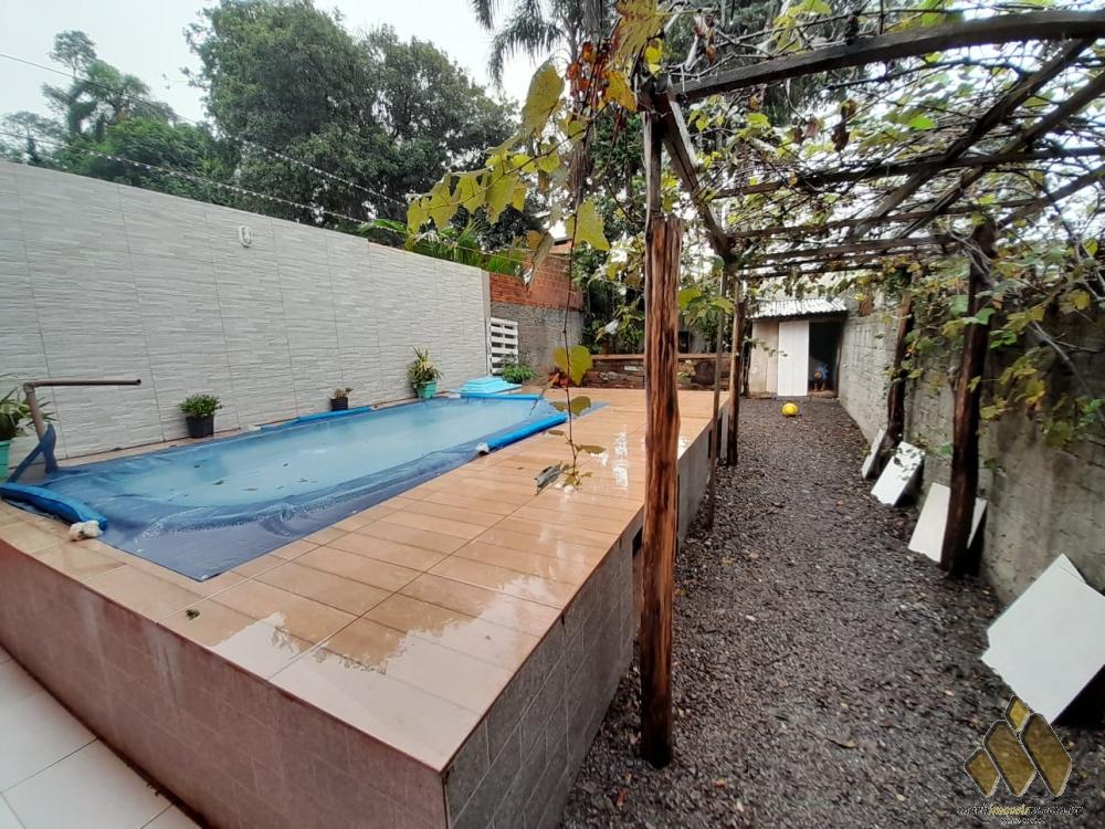 2 dorm, sala e cozinha integradas com churrasqueira e lareira, área fechada com vidros, garagem dois carros, lavanderia, pátio com piscina nos fundos.