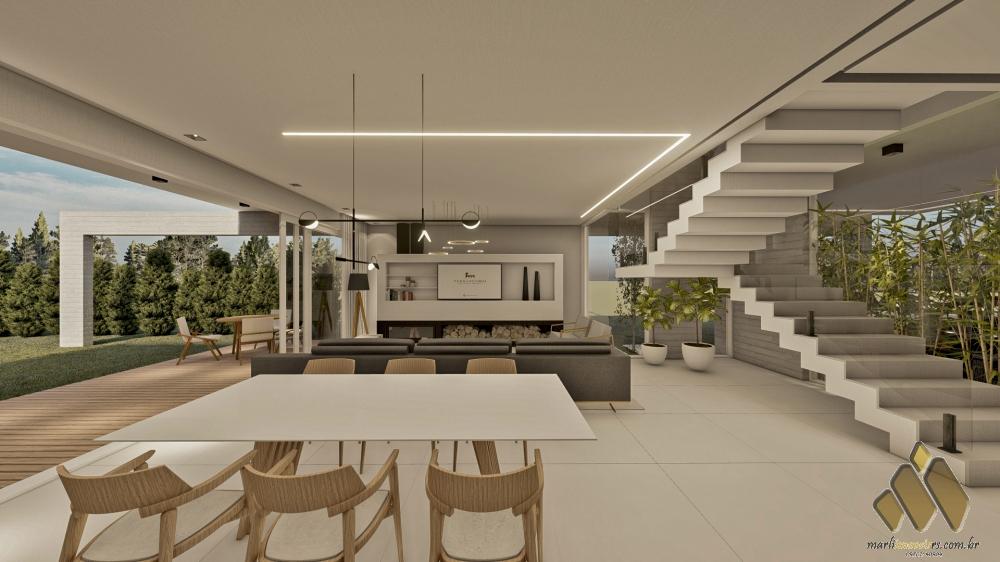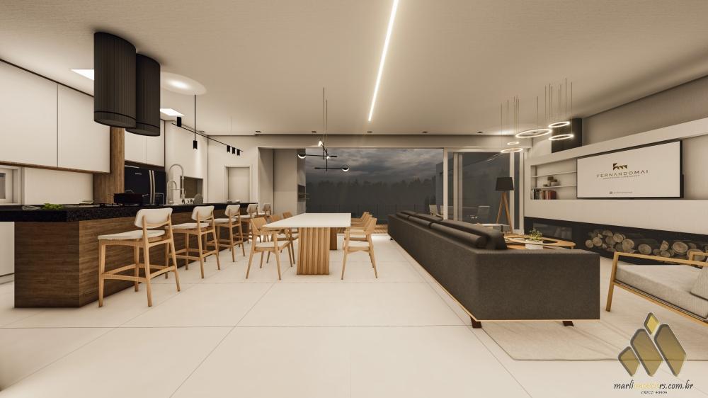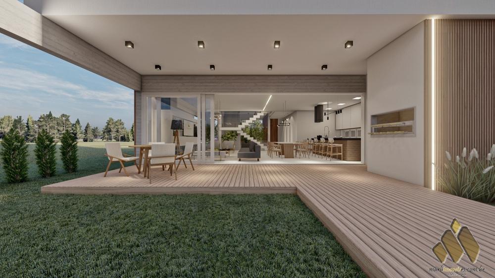 Alvenaria com 4 suítes, sendo uma térrea e a master com closet e banheira, oferecendo uma vista privilegiada. Uma sala de estar e jantar integradas com uma lareira calefatora, ambas com grandes aberturas. Com vista para o lago, o imóvel dispõe de um espaço gourmet com deck de madeira, já com a espera para a piscina, tudo integrado à natureza.