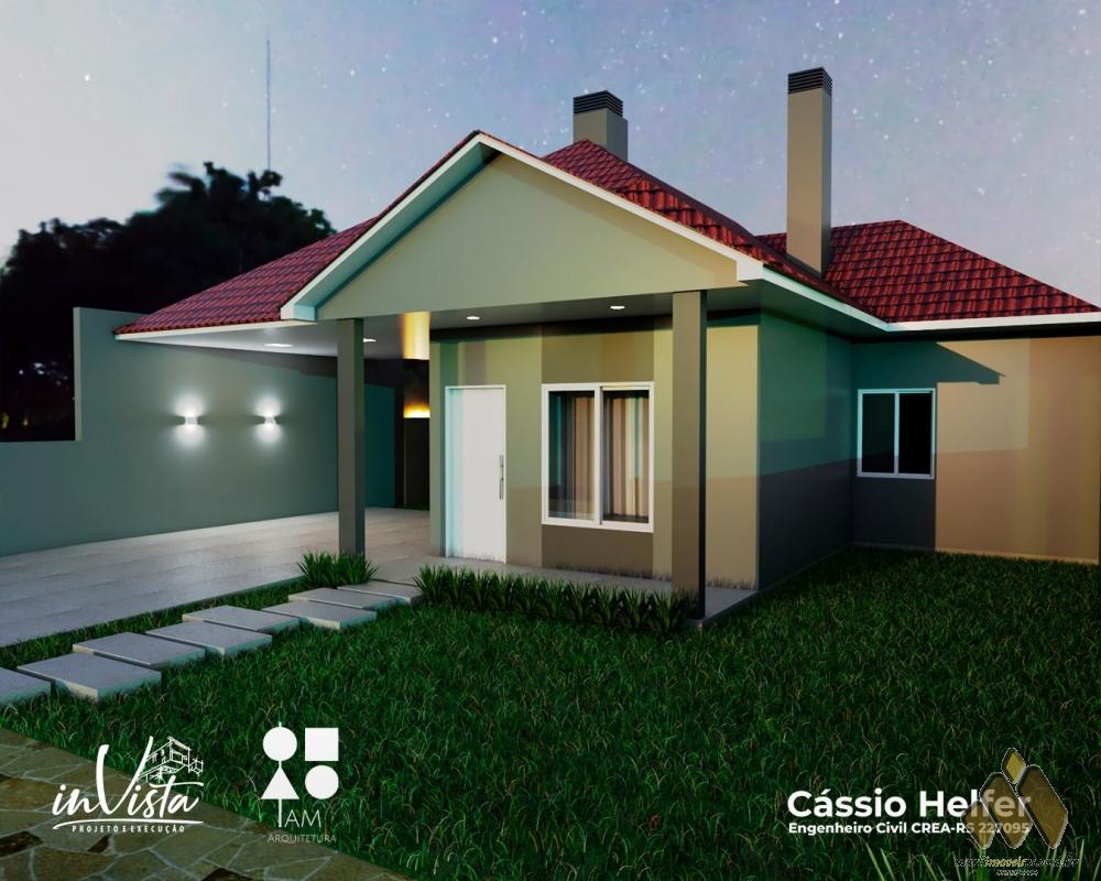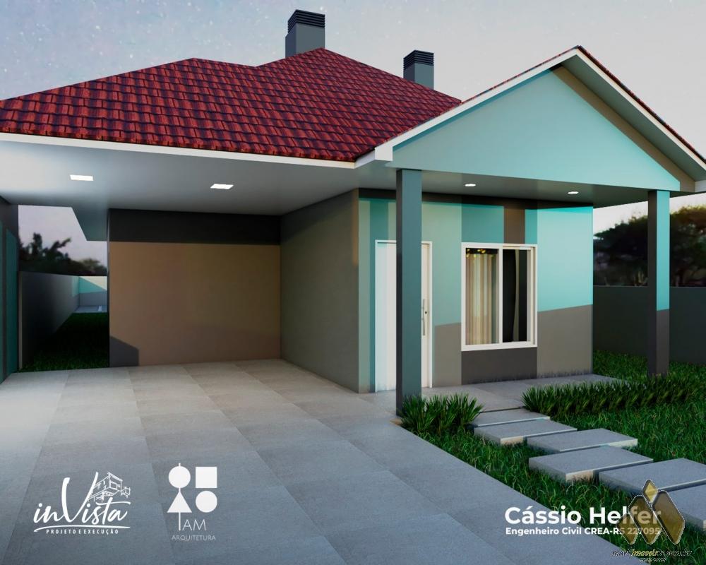 Alvenaria na planta com 3 dormitórios, sendo uma suíte, sala de jantar integrada com a sala de estar e a cozinha que conta com churrasqueira, banheiro social, lavanderia, garagem 2 carros lado a lado, pátio. Possibilidade de incluir lareira.
