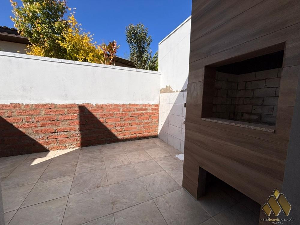 2 dormitórios, sala e cozinha conjugadas, banheiro, área de serviço, churrasqueira, pátio frente e pequeno pátio fundos, garagem. Ótimo acabamento.