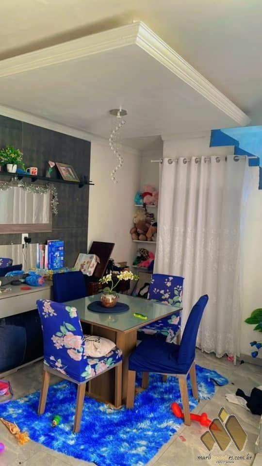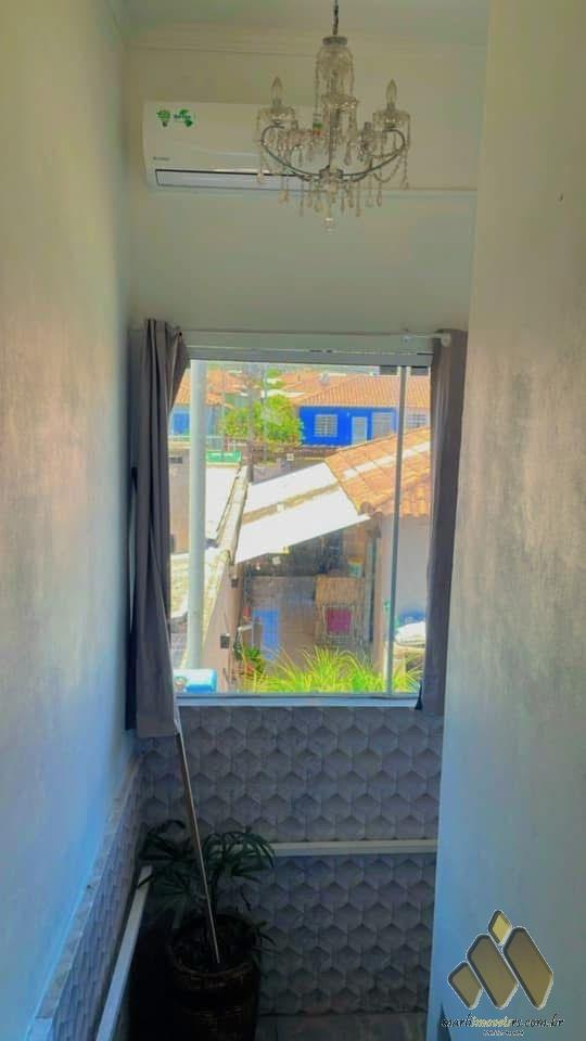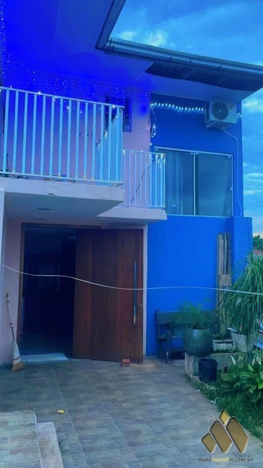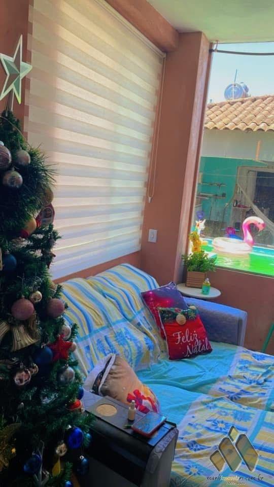 Alvenaria de dois pisos, dispõe de 2 dormitórios, com portão eletrônico, garagem pra dois carros, área de lazer, quiosque, churrasqueira, piscina em alvenaria com luzes e cascata, sala estar, sala jantar, 2 banheiros, closet, forro em gesso, semimobiliada.