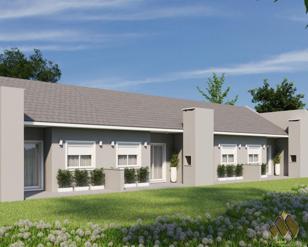 2 dormitórios, sala e cozinha conjugadas, área de serviço, churrasqueira, pátio, vaga de estacionamento.