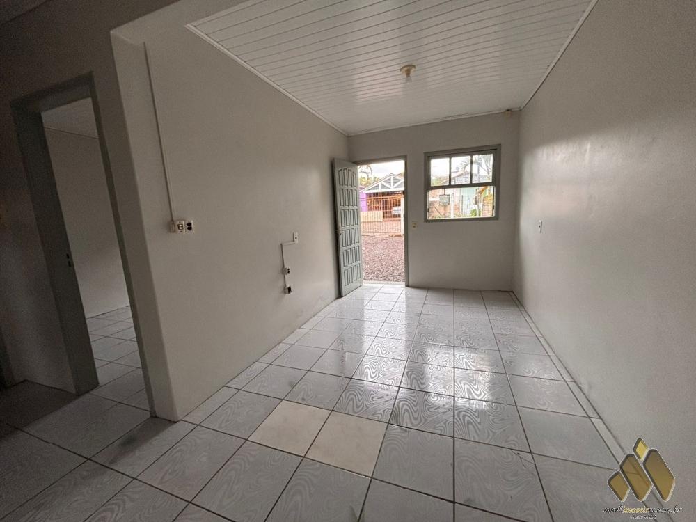Aconchegante casa de alvenaria com amplo pátio frente e fundos. São 2 dormitórios, sala, cozinha, banheiro, área de serviço, vaga carro. Toda cercada e murada.