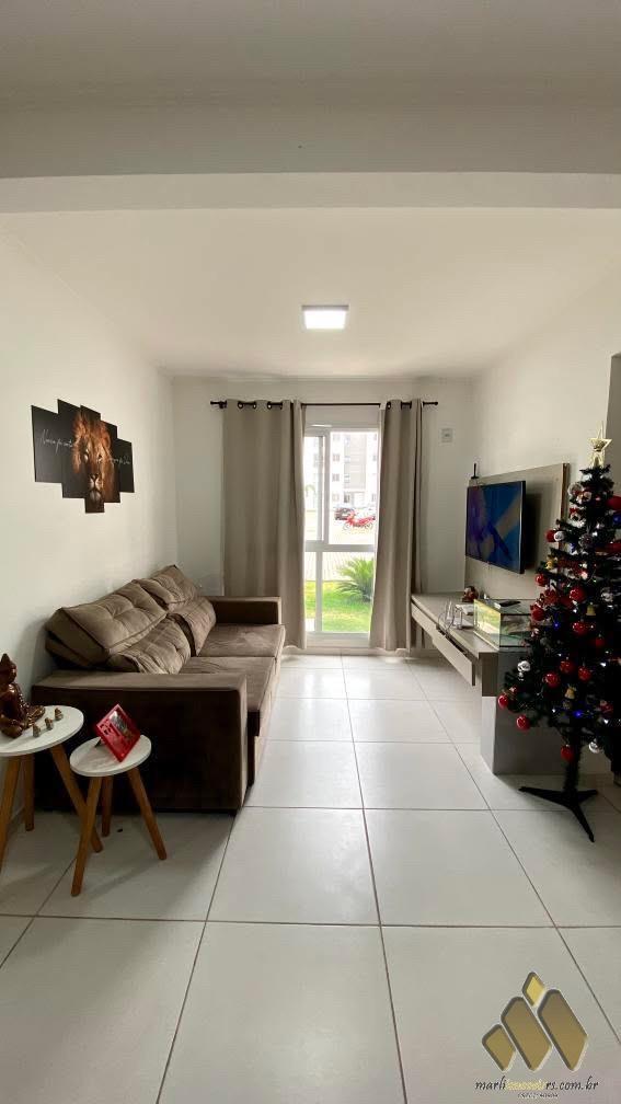 2 dormitórios, sala, cozinha, banheiro, área de serviço, churrasqueira, box de estacionamento.