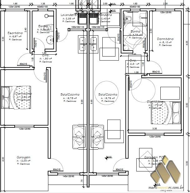 Geminadas com 2 dormitórios, sala e cozinha conjugadas, área de serviço com churrasqueira, garagem, amplo pátio frente e fundos. Esquina com pátio amplo lateral (Esquina 260mil).