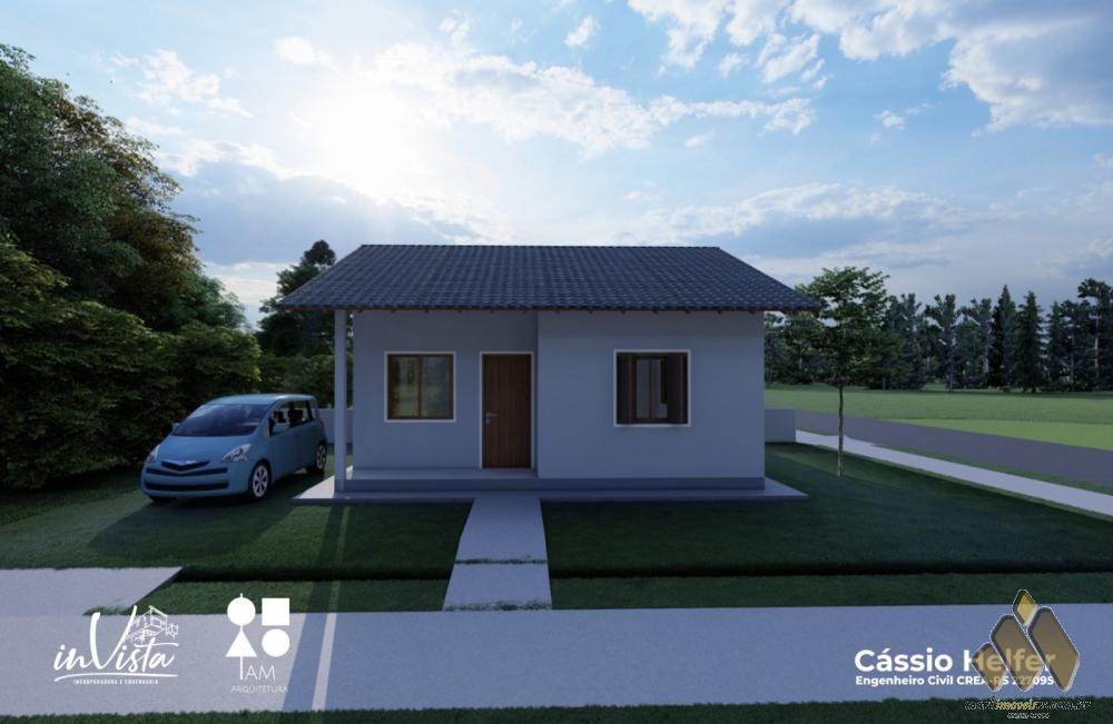 2 dormitórios, sala/cozinha, banheiro, área de serviço, pátio frente e fundos.