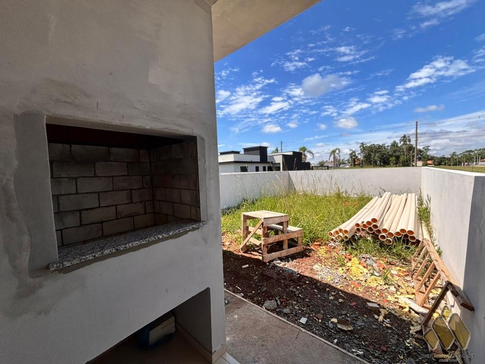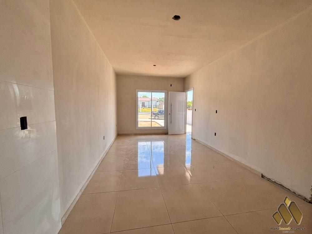 Geminada com amplo pátio e ótimo acabamento. 2 dormitórios, sala e cozinha integradas, banheiro, área de serviço, churrasqueira, vaga garagem, amplo pátio frente e fundos.